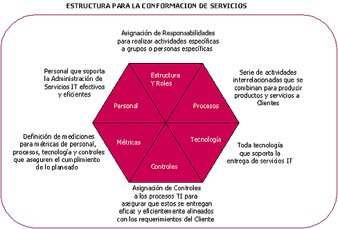 Adexus adhiere a las mejores prácticas en el diseño y estructuración de sus servicios, integrando las mismas a los distintos elementos que los conforman y que juegan un rol importante en cada una de sus áreas. Una descripción gráfica de esta estructuración conceptual se muestra en las figuras siguientes, describiendo además la influencia de las distintas prácticas en estas áreas.