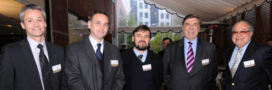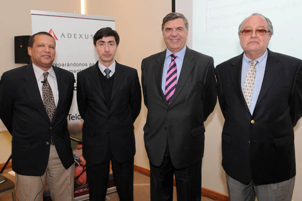 | Bryan Mordecai, Director de Soluciones de Interconexión de Telcordia; Raúl Lazcano, Jefe Departamento Regulación y Estudios de SUBTEL; Carlos Busso, Presidente Ejecutivo de ADEXUS y Antonio Vásquez, Vicepresidente para América Latina y El Caribe de Telcordia. |